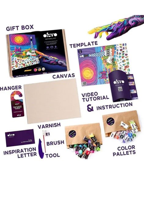 Señorita, how about a stroll through the vibrant parks of Barcelona, feeling the warmth of the Spanish sun on your face while sipping sangria? Then, wander through cozy streets, catching admiring glances. With this OKTO kit, you can easily capture that playful summer vibe, all from the comfort of your home. Activate all four of your senses as you create your own Spanish masterpiece.
