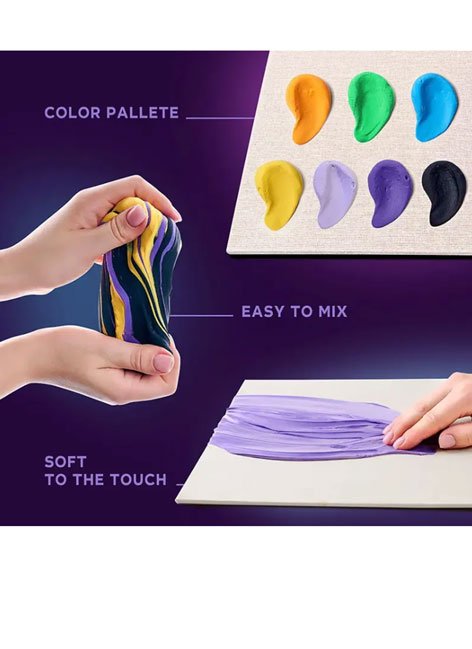 Step 1: Choose the color you want to start with, take the clay with your fingers, and boldly apply it to the canvas. Create your background, then mold according to the template and transfer parts of the painting to the base. Feel how art is born under your hand.